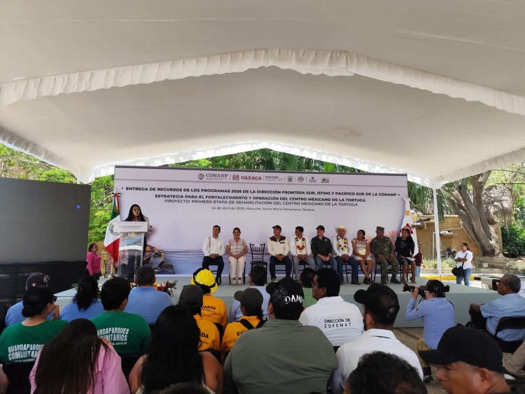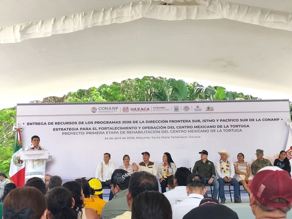 Inversión sin precedentes: conservación marina y desarrollo comunitarioDurante el acto, el Gobernador anunció la entrega de 20 millones de pesos para el fortalecimiento y operación de la primera etapa de rehabilitación del Centro Mexicano de la Tortuga, recursos que también respaldan 188 proyectos comunitarios orientados a la conservación, el estudio científico, la vigilancia y el monitoreo de especies marinas a lo largo del litoral oaxaqueño, reforzar sus capacidades científicas y educativas, consolidándolo como un referente internacional en investigación y educación ambiental.